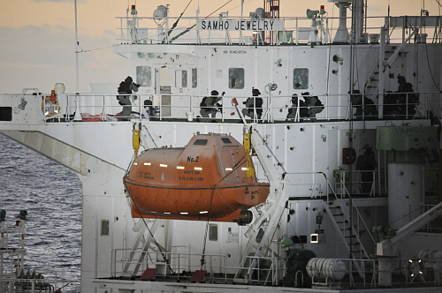 ¼Ò¸»¸®¾Æ ÇØÀûµé¿¡ ÀÇÇØ ³³Ä¡µÈ '»ïÈ£ÁÖ¾ó¸®È£' ±¸ÃâÀÛÀüÀÌ ¼º°øÇÔ¿¡ µû¶ó Á¤ºÎ´Â »ýÆ÷ÇÑ ÇØÀû ó¸® ÀÛ¾÷¿¡ Âø¼öÇß´Ù.
