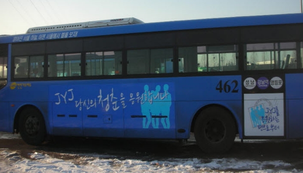 1¿ù 27ÀÏ(¸ñ)ºÎÅÍ °¡¼ö JYJ ÆÒµéÀº À̵鿡 ´ëÇÑ ÀÀ¿ø ¸Þ½ÃÁö¸¦ ´ãÀº '´ç½ÅÀÇ Ã»ÃáÀ» ÀÀ¿øÇÕ´Ï´Ù' ¹ö½º±¤°í¸¦ ½ÃÀÛÇÑ´Ù.