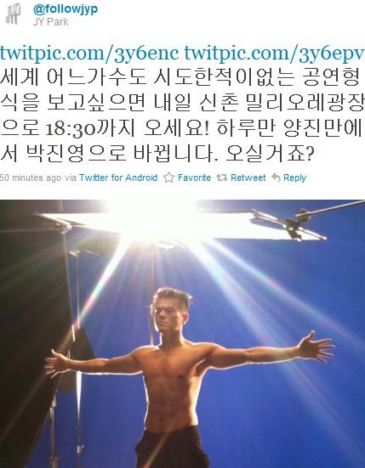 °¡¼öÀÌÀÚ ÇÁ·Îµà¼, ÃÖ±Ù KBS µå¶ó¸¶ µå¸²ÇÏÀÌ¿¡¼ ±³»ç ¡®¾çÁø¸¸¡¯À¸·Î Ȱ¾àÁßÀÎ ¹ÚÁø¿µÀÌ ÀÚ½ÅÀÇ Æ®À§ÅÍ¿¡ ¡°¼¼°è ¾î´À°¡¼öµµ ½ÃµµÇÑ ÀûÀÌ ¾ø´Â °ø¿¬Çü½ÄÀ» º¸°í ½ÍÀ¸¸é ³»ÀÏ ½ÅÃÌ ¹Ð¸®¿À·¹ ±¤ÀåÀ¸·Î 18:30±îÁö ¿À¶ó¡±´Â Àǹ®ÀÇ Æ®À§Å͸¦ ³²°Ü ±Ã±ÝÁõÀ» ÀھƳ»°í ÀÖ´Ù.