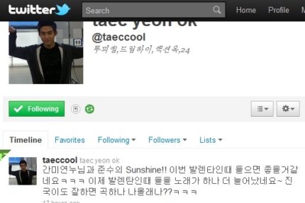 2PMÀÇ ¸â¹ö Åÿ¬ÀÌ ÀÚ½ÅÀÇ Æ®À§Å͸¦ ÅëÇÏ¿© °£¹Ì¿¬°ú ÁؼöÀÇ µà¿§°î ¡®Sunshine¡¯À» ¹ß·»Å¸ÀÎ µ¥ÀÌ¿¡ ¾î¿ï¸®´Â À½¾ÇÀ¸·Î ÃßõÇß´Ù.