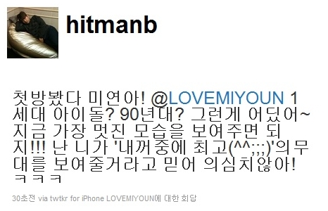 ¹æ½ÃÇõÀº 17ÀÏ Mnet ¡®¿¥Ä«¿îÆ®´Ù¿î¡¯¿¡¼ ÀÚ½ÅÀÇ °î<ÆÄÆÄ¶óÄ¡(Feat.¿¡¸¯)>À» °¡Áö°í ÄĹ鹫´ë¸¦ ¼±º¸ÀÎ °£¹Ì¿¬¿¡°Ô Æ®À§Å͸¦ ÅëÇØ ¡°1¼¼´ë ¾ÆÀ̵¹? 90³â´ë? ±×·±°Ô ¾îµø¾î~Áö±Ý °¡Àå ¸ÚÁø ¸ð½ÀÀ» º¸¿©ÁÖ¸é µÇÁö!!¡±¶ó¸ç ¿¹Àü¿¡ ¾ÆÀ̵¹ Ãâ½ÅÀÌ¸é¼ È¦·Î¼±â¸¦ Çϰí ÀÖ´Â °£¹Ì¿¬¿¡°Ô Áø½É¾î¸° ÀÀ¿øÀÇ ±ÛÀ» ³²°å´Ù.