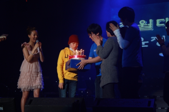 À̹ø ¸¸³²Àº Çѱ¹¸ÞÀÌÅ©¾îÀ§½ÃÀç´ÜÀÇ ¿äûÀ¸·Î ÀÌ·ïÁ³´Ù. ¾î·ÈÀ» ¶§ºÎÅÍ ÀåÀ±Á¤À» ÁÁ¾ÆÇß´ø ÈñÁÖ¾çÀÇ ¼Ò¿øÀ» ÀÌ·ïÁÖ±â À§ÇØ ¸¸³²À» ÀçÀÇÇß´ø °Í. ÀåÀ±Á¤Àº ÀÌ¿¡ ÈçÄèÈ÷ ÈñÁÖ¾ç °¡Á·À» °ø¿¬¿¡ ÃÊ´ëÇßÀ¸¸ç ¸¶Ä§ »ýÀÏÀÎ ÈñÁÖ¾çÀ» À§ÇØ Á÷Á¢ ½ÎÀÎÇÑ Ä¿ÇÃÆ¼¼ÅÃ÷¿Í ¸Ó±×ÄÅ, ÈñÁÖ¸¦ À§ÇÑ À̴ϼÈÀÌ µé¾î°£ ¸ñ°ÉÀ̸¦ °É¾îÁÖ´Â µî Á¶ÃÍÇÑ »ýÀÏ ÆÄƼµµ ÇÔ²² Çß´Ù. ÈñÁÖ¾çÀº ±× µ¿¾È Èûµç º´¸¶¿Í ½Î¿ì¸ç ÁöÃÄÀÖ¾úÁö¸¸ À̳¯ ¸¸ÅÀº ¹«´ëÀ§¿¡¼ ¡®¾î¸Ó³ª¡¯¸¦ ºÎ¸£´Â µî ¹àÀº ¸ð½ÀÀ» º¸¿´´Ù.