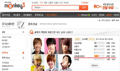 ÀÌ¾î ºò¹ð ¸â¹ö ´ë¼º(233¸í, 19%), JYJ ¸â¹ö ¿µ¿õÀçÁß(86¸í, 7%), ³ëȫö(48¸í,4%), À¯¼¼À±(24¸í, 2%) µîÀÌ µÚ¸¦ À̾ú´Ù.