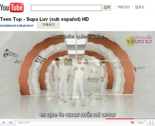 ¼¼°èÀûÀÎ µ¿¿µ»ó »çÀÌÆ®ÀÎ À¯Åõºê¸¦ ÅëÇØ ¡®Supa Luv¡¯ÀÇ ¹ÂÁ÷ºñµð¿À¿Í ¹æ¼Û ¿µ»óÀÌ ¹ÌÁÖ, À¯·´, ¾Æ½Ã¾Æ µî ¼¼°è °¢±¹ÀÇ ÆÒµé¿¡ ÀÇÇØ °¢ ±¹ÀÇ ¾ð¾î·Î ¹ø¿ªµÇ¸ç ¡®TEEN TOP(ƾž)¡¯¿¡ ´ëÇÑ ¼¼°èÀûÀÎ °ü½ÉÀ» ÀÔÁõÇϰí ÀÖ´Â °Í.