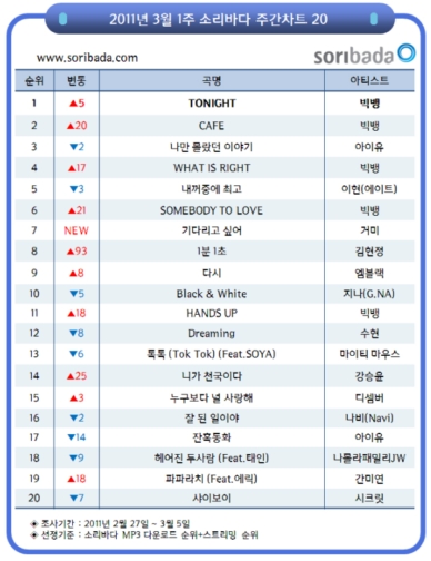 ºò¹ð 'Åõ³ªÀÕ(TONIGHT)' ¼Ò¸®¹Ù´Ù ÁÖ°£Â÷Æ® 1À§ µî±Ø