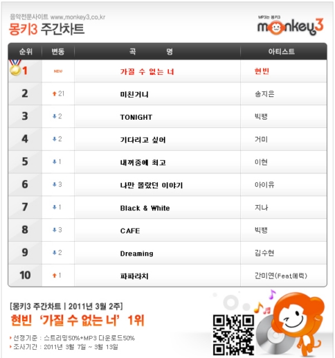 À½¾ÇÀü¹®»çÀÌÆ® ¸ùŰ3 3¿ù 2ÁÖ(3¿ù 7ÀÏ~13ÀÏ) ÁÖ°£Â÷Æ®¿¡¼ ÇöºóÀÌ ÀÔ´ëÇÏ¸é¼ ¹ßÇ¥ÇÑ ¸®¸ÞÀÌÅ©°î ¡®°¡Áú ¼ö ¾ø´Â ³Ê¡¯°¡ ºò¹ð°ú ¾ÆÀÌÀ¯¸¦ ´©¸£°í 1À§¿¡ ¿À¸¥ °Í. ¸ùŰ3 ÄÁÅÙÃ÷ÆÀ ÀÌÁ¤±Ô ÆÀÀåÀº ¡°Çغ´´ë ÀÔ´ëÇÑ Çöºó¿¡ ´ëÇÑ °ü½ÉÀ» ÀÔÁõÇÏµí ¡®°¡Áú ¼ö ¾ø´Â ³Ê¡¯°¡ Áï½Ã 1À§·Î ÁøÀÔÇß´Ù¡±¸ç ¡°ÇöºóÀÇ ¾ÖÀýÇÏ°íµµ °¨¹Ì·Î¿î ¸ñ¼Ò¸®°¡ Æø¹ßÀûÀÎ ¹ÝÀÀÀ» ¾ò°í ÀÖ´Ù¡±°í ¼³¸íÇß´Ù.