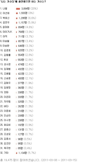 Ä¿¹Â´ÏƼ Æ÷ÅлçÀÌÆ® 'µð½ÃÀλçÀ̵å'°¡ Áö³ 8ÀϺÎÅÍ 15ÀϱîÁö "'³ª´Â °¡¼ö´Ù'¿¡ Ã⿬ÇßÀ¸¸é ÇÏ´Â °¡¼ö´Â?"À̶ó´Â ÁÖÁ¦·Î ½Ç½ÃÇÑ ¼³¹®Á¶»ç¿¡¼ ³ª¾óÀÌ 1À§¸¦ Â÷ÁöÇß´Ù.