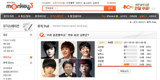 À½¾ÇÀü¹®»çÀÌÆ® ¸ùŰ3´Â Áö³ 3¿ù 24ÀϺÎÅÍ 30ÀϱîÁö ȸ¿ø 760¸íÀ» ´ë»óÀ¸·Î ÅõÇ¥¸¦ ½Ç½Ã, ¡®MBC ¿¹´ÉÇÁ·Î ¡®¿ì¸® °áÈ¥Çß¾î¿ä¡¯ ¿ª´ë ÃÖ° ³²ÆíÀº?¡¯ ¼øÀ§¸¦ ¹ßÇ¥Çß´Ù.