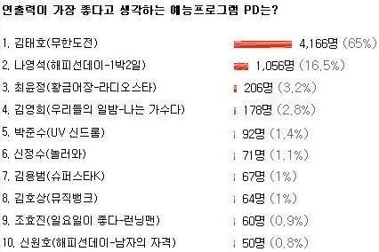 Ä¿¹Â´ÏƼ Æ÷ÅлçÀÌÆ® 'µð½ÃÀλçÀ̵å'°¡ Áö³ 3¿ù 29ÀϺÎÅÍ 4¿ù 5ÀϱîÁö "¿¬Ãâ·ÂÀÌ °¡Àå ÁÁ´Ù°í »ý°¢ÇÏ´Â ¿¹´ÉÇÁ·Î±×·¥ PD´Â?"À̶ó´Â ÁÖÁ¦·Î ½Ç½ÃÇÑ ¼³¹®Á¶»ç¿¡¼ ±èÅÂÈ£ PD°¡ 1À§¸¦ Â÷ÁöÇß´Ù.