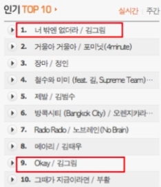 ±è±×¸²ÀÇ µ¥ºß°î '³Ê¹Û¿£ ¾ø´õ¶ó'´Â 6ÀÏ ¿ÀÈÄ ÇöÀç ¿Â¶óÀÎ À½¾Ç»çÀÌÆ® ¹÷½º ½Ç½Ã°£ Â÷Æ® 1À§¸¦ À¯ÁöÇϰí ÀÖ´Ù. »Ó¸¸ ¾Æ´Ï¶ó ¼±¹è°¡¼ö ¹ÚÇý°æ°ú ÀÔÀ» ¸ÂÃá '¿ÀÄÉÀÌ(Okay)'¿ª½Ã 10À§¸¦ Â÷Áö, µ¥ºß¾Ù¹ü¿¡ ¼ö·ÏµÈ µÎ °î ¸ðµÎ 10À§ ±Ç ¾È¿¡ µå´Â ±â¿°À» ÅäÇß´Ù.