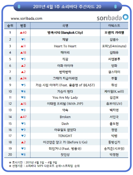 °É±×·ì ¾ÖÇÁÅͽºÄðÀÇ 3ÀÎÁ¶ À¯´ÖÀÎ ¿À·»Áö ļ¶ó¸áÀº ¡®¹æÄÛ½ÃÆ¼(Bangkok City)¡¯·Î ¼Ò¸®¹Ù´Ù 4¿ùÀÇ Ã¹Â° ÁÖ ÁÖ°£Â÷Æ®(4¿ù 3ÀÏ~4¿ù 9ÀÏ)¿¡¼ 1À§¸¦ Â÷ÁöÇß´Ù. ÀÌ·Î½á ¿À·»Áö ļ¶ó¸áÀº À۳⠡®¸¶¹ý¼Ò³à¡¯, ¡®¾ÆÀ×¢½¡¯ÀÇ È÷Æ® ÀÌÈÄ µ¥ºß ¾à 10°³¿ù ¸¸¿¡ Â÷Æ® Á¤»ó¿¡ ¿À¸£´Â ¿µ¿¹¸¦ ¾È°Ô µÆ´Ù.