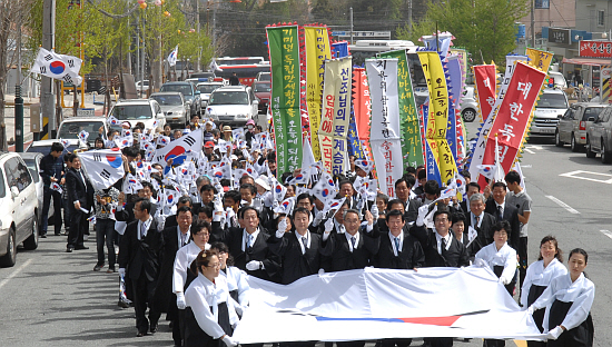 ¿ÀÀü 9½Ã 30ºÐ ¾ÆÁÖµ¿ 3.1±â³äž ¾Õ¿¡¼ µ¶¸³¼±¾ð¼ ³¶µ¶ µî ±â³ä½ÄÀ» ½ÃÀÛÀ¸·Î °Å¸®ÇàÁø°ú ´ç½Ã ÀϺ»Ç庴°úÀÇ ´ëÄ¡»óȲÀ» ÀçÇöµÆ´Ù.