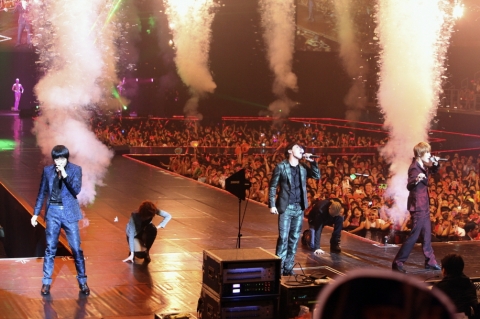 JYJ(ÀçÁß, À¯Ãµ, Áؼö)ÀÇ ¿ùµåÅõ¾î ÄܼƮ ¡®JYJ World Tour Concert 2011¡¯°¡ ÆËÀÇ º»°íÀåÀÎ ¹ÌÁÖ ´ë·úÀ¸·Î ¹«´ë¸¦ ¿Å±ä´Ù.
