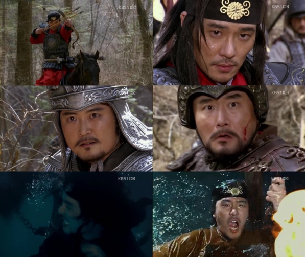 À̳¯ ¹æ¼ÛºÐ¿¡¼´Â ÈÄ¿¬±¹ÀÇ °ø°ÝÀ» ¹ÞÀº °í±¸·Á°¡ ÀÌ¿¡ ´ëÇ×ÇÏ´Â ½ºÅ丮°¡ Àü°³µÆ´Ù. ¿©±â¼ ´ã´ö(ÀÌŰï, ¿Õ¸í: ±¤°³ÅäÅ¿Õ)Àº ¿ÕÀÚÀÇ È·ÁÇÑ ½ÅºÐÀ» ¹ö¸®°í °í±¸·Á¸¦ ÁöŰ´Â Àå¼ö·Î Ȱ¾àÇÏ´Â ¸ð½ÀÀÌ ±×·ÁÁ³´Ù. ±×ÀÇ ±â°³¿Í Áö·«¿¡ ¿äµ¿¼ºÀ» ÇÔ¶ô½ÃŰ·Á´ø ÈÄ¿¬ÀÇ ÅÂÀÚ ¸ð¿ëº¸(ÀÓÈ£)´Â ²Ä¦ÇÏÁö ¸øÇϰí Åð°¢Çß´Ù.