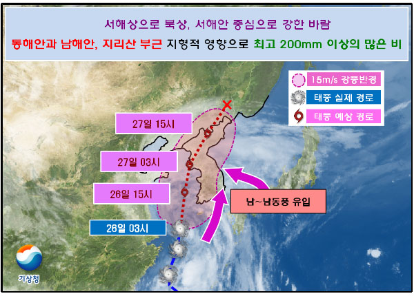 26ÀÏ ±â»óû¿¡ µû¸£¸é, À̹ø ÅÂdzÀº 26ÀÏ(ÀÏ) ³·¿¡´Â ¼Çس²ºÎ ÇØ»ó±îÁö ºÏ»óÇØ 26ÀÏ(ÀÏ) ÀÚÁ¤ ÀüÈÄ¿¡ ¿ËÁø¹Ýµµ ºÎ±ÙÀ¸·Î »ó·úÇÒ °ÍÀ¸·Î ¿¹»óµÈ´Ù.