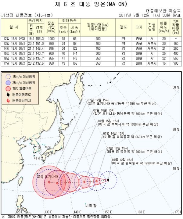Á¦6È£ ÅÂdz ¡®¸Á¿Â¡¯(MA-ON) ¹ß»ý...Áø·Î´Â À¯µ¿Àû