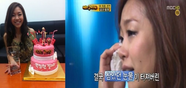Áö³ 14ÀÏ ¹æ¼ÛµÈ MBC ¿ì¸®µéÀÇ ÀϹ㠡®¼¹ÙÀ̹ú ³ª´Â °¡¼ö´Ù¡¯(ÀÌÇÏ ³ª°¡¼ö)¿¡¼ ÃÖÁ¾°æ¿¬¿¡¼ 1À§¸¦ Â÷ÁöÇÑ ¹ÚÁ¤ÇöÀº ÃÖÁ¾°á°ú ¹ßÇ¥ ÈÄ Âü¾Ò´ø ´«¹°À» ÅͶ߸®¸ç "Æò»ý ÀØÁö ¸øÇÒ ¿µ±¤ÀÌ µÉ °Í °°´Ù. °¨»çÇÕ´Ï´Ù"¶ó¸ç ´«¹° ¼Ò°¨À» ¹àÇô ÈÁ¦°¡ µÇ°í ÀÖ´Ù.