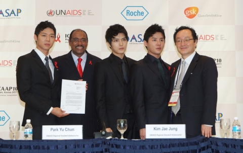 Áö³ 8¿ù 26ÀÏ ºÎ»ê º¤½ºÄÚ(BEXCO)¿¡¼ °³ÃÖµÈ Á¦ 10Â÷ ¾Æ½Ã¾Æ¡¤ÅÂÆò¾ç ¿¡ÀÌÁî´ëȸ (ICAAP10: The 10th International Congress on AIDS in Asia and the Pacific, ÀÌÇÏ ICAAP10)¡¯¿¡¼ UNAIDS(À¯¿£¿¡ÀÌÁî, UN »êÇÏ ¿¡ÀÌÁî Àü´ã±â±¸) ¾ÆÅÂÁö¿ª Ä£¼± ´ë»ç(Goodwill Ambassadors)·Î JYJ°¡ Çѱ¹ÀÎ ÃÖÃÊ·Î ÀÓ¸íµÇ¾î À§ÃË½Ä ¹× ±â³ä ÃàÇÏ °ø¿¬À» °¡Á³´Ù.
