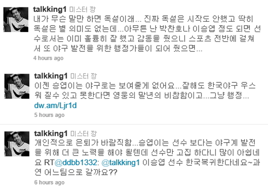 ÇÑÆí °º´±Ô´Â Áö³ Æ®À§ÅÍ¿¡¼µµ ¾çÁØÇõ°ú ÀÌÁ¾¹ü µî ¾ß±¸ ¼±¹èµé¿¡ ´ëÇØ ¸Íºñ³À» ÆÛºÎ¾î µµ¸¶¿¡ ¿Ã¶ú¾ú´Ù.