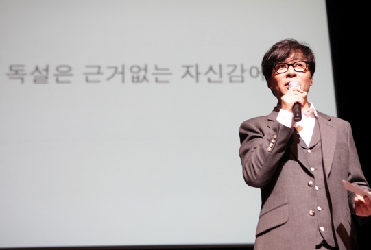 ¡°Àú ±×·¸°Ô µ¶¼³ÇÏÁö ¾Ê¾Æ¿ä¡±¶ó´Â ¸»·Î ¿ôÀ¸¸ç °¿¬À» ½ÃÀÛÇÑ À±»óÀº ¡°µ¶¼³Àº ±Ù°Å ¾ø´Â Àڽۨ¿¡°Ô ÇÑ´Ù¡±¸ç µ¶¼³À» ÇÏ´Â ÀÌÀ¯¿¡ ´ëÇØ ÀÔÀ» ¿¾ú´Ù. ±×´Â ¡°35»ì, ÀڽۨÀ» °®°í ¶°³ À¯Çб濡¼ ÀåÇбÝÀÌ °É¸° ½ÃÇè¿¡ ³«¹æÇÏ´Â µî ÀÚÁ¸½É¿¡ ¸¹Àº »óó¸¦ ÀÔ¾úÁö¸¸ À̸¦ ±Øº¹Çϱâ À§ÇØ ¹ãÀ» »õ°í °øºÎÇØ ÁÁÀº °á°ú¸¦ ¾òÀ» ¼ö ÀÖ¾ú´Ù¡±¸ç ¡°ÀڽۨÀº ³»½ÇÀÌ ÅºÅºÇØÁö±â Àü±îÁö´Â ¸Å¿ì À§ÇèÇÏ´Ù. ÇÏÁö¸¸ ±Ù°Å ¾ø´Â ÀڽۨÀ¸·Î ½ÇÆÐ¸¦ °æÇèÇÏ°Ô µÇ´õ¶óµµ ±×°ÍÀº Èʳ¯ ³ªÀÇ ²ÞÀ» ÀÌ·ç±â À§ÇÑ Ã˸ÅÁ¦°¡ µÉ ¼ö ÀÖ´Ù¡±°í ¸»Çϸç ÇлýµéÀ» °Ý·ÁÇß´Ù.