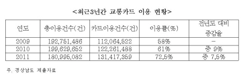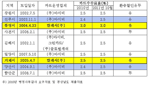 ÇöÀç µµ³» ¹ö½º ±³ÅëÄ«µå µµÀÔ Áö¿ªÀº â¿ø, ÁøÁÖ, Å뿵, »çõ, ±èÇØ, ¹Ð¾ç, °ÅÁ¦, ¾ç»ê, ÇԾȱº µî 9°³ ½Ã±ºÀ¸·Î ±³ÅëÄ«µå ÀÌ¿ë·üÀº ¸Å³â Áõ°¡Çϰí ÀÖ´Ù.