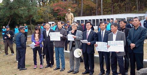 ±âÀÚȸ°ßÀåÀÌ µÈ ±è¹éÀÏ µ¿»ó¾Õ¿¡¼´Â ÂüÀü¿ë»ç¿Í º¸¼ö´Üü ȸ¿ø 50¿©¸íÀÌ µ¿»óÀ» µÑ·¯½Î°í ÇѶ§ ½Ã¹Î´ÜüÀÇ ±âÀÚȸ°ßÀ» ÀúÁöÇϱ⵵ Çß´Ù.