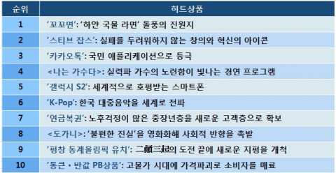 ù°, ¼ÒºñÀÚµéÀº ¨ç Åë³äÀ» ±ú´Â »õ·Î¿ò¿¡ ¿±¤Çß´Ù. ¡®ÇÏ¾á ±¹¹° ¶ó¸é¡¯ÀÇ Àα⸦ ¼±µµÇÑ ¡®²¿²¿¸é¡¯, âÀÇ¿Í Çõ½ÅÀÇ ¾ÆÀÌÄÜ ¡®½ºÆ¼ºê À⽺¡¯, »ö´Ù¸¥ ÁøÇà¹æ½ÄÀ¸·Î Àç¹Ì¿Í °¨µ¿À» ¼±»çÇÑ <³ª´Â °¡¼ö´Ù>°¡ ´ëÇ¥ÀûÀÌ´Ù.