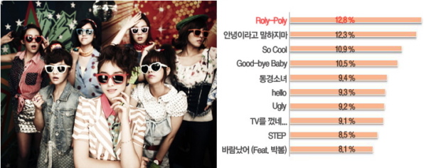 2011 ³×À̹ö ¹ÂÁ÷ Á¾ÇÕ Â÷Æ® 1À§´Â Ƽ¾Æ¶ó(T-ara)ÀÇ Roly-Poly°¡ Â÷ÁöÇß´Ù. 6¿ù¿¡ ¹ß¸ÅµÈ ¡®Á¸Æ®¶óº¼Å¸ ¿ö³Êºñ¡¯¿¡ ¼ö·ÏµÈ ÀÌ °îÀº º¹°íÀûÀÎ ¹ÂÁ÷ºñµð¿À¿Í ÇÔ²² ²ÙÁØÈ÷ Å« Àα⸦ ¾òÀ¸¸ç Á¤»ó¿¡ ¿Ã¶ú´Ù. 2À§¿¡´Â MP3 À½¿ø ±¸ÀÔ¿¡¼ °¼¼¸¦ º¸ÀÎ ´ÙºñÄ¡ÀÇ ¡®¾È³çÀ̶ó°í ¸»ÇÏÁö¸¶¡¯°¡ ÀÚ¸®Çß´Ù. ¶ÇÇÑ, ÇϹݱ⠸¹Àº Àα⸦ ´©·È´ø ¿Àµð¼Ç ÇÁ·Î±×·¥ ¡®½´ÆÛ½ºÅ¸K¡¯ À½¿øµµ °¼¼¸¦ º¸À̸ç 30À§ ³» ÃÑ 5°îÀÌ µî·ÏµÇ¾ú´Ù. ¹ö½ºÄ¿¹ö½ºÄ¿ÀÇ µ¿°æ¼Ò³à(5À§), ¿ï¶ó¶ó ¼¼¼ÇÀÇ ¼ÂÊÇÏ´Ã(14À§), Åõ°³¿ùÀÇ ¿©¿ì¾ß(26À§) µîÀÌ »óÀ§±Ç¿¡ ÀÚ¸®Çß´Ù.