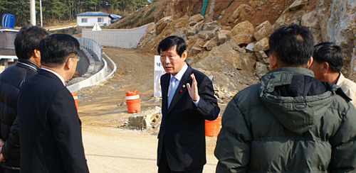 À̳¯ Ȳ ÀÇÀåÀº Áֹε鿡°Ô 2011³â Áֹμ÷¿ø»ç¾÷ È®º¸ ÇöȲ°ú °æ°ú¸¦ ¼³¸íÇÑ ÈÄ, Áֹεé·ÎºÎÅÍ 2012³â Áֹμ÷¿ø»ç¾÷À» °ÇÀÇ ¹Þ°í, 6°³¿ù° °ø»ç°¡ Áߴܵǰí ÀÖ´Â ±ÙÆ÷¸¶À» ¾È±æ µµ·Î°³¼³ ÇöÀå°ú ÇØ±Ý°¸¶À» ½Å¼³ À¯¶÷¼± ¼±ÂøÀå ÇöÀåÀ» µÑ·¯º¸°í ÁֹεéÀÇ ´Ù¾çÇÑ ÀǰßÀ» ¼ö·ÅÇß´Ù.