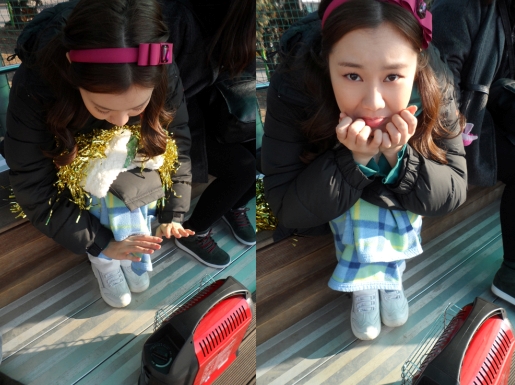 »çÁø ¼ÓÀÇ ±è¿¹¿øÀº ´ã¿ä¿Í µÎÅÍ¿î Á¡ÆÛ·Î ¿Â ¸öÀ» °¨½Ñ ä ÀÛÀº ÈÞ´ë¿ë ³·Î ¾Õ¿¡ Âɱ׷Á ¾É¾Æ ¾ð ¼ÕÀ» ³ìÀ̰í ÀÖ´Ù. ±×·³¿¡µµ ÃßÀ§°¡ °¡½ÃÁö ¾Ê´ÂÁö ¿ï»óÀ» ÁöÀ¸¸ç Ä«¸Þ¶ó¸¦ ÀÀ½ÃÇϰí ÀÖ´Â ±Í¿ä¹Ì Æ÷Áî ¶ÇÇÑ ½Ã¼±À» »ç·ÎÀâ´Â´Ù.