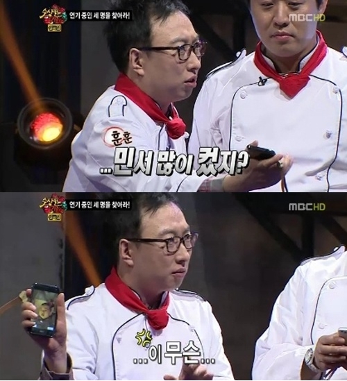 ¹Ú¸í¼ö´Â Áö³ 22ÀÏ ¹æ¼ÛµÈ MBC ¼³Æ¯Áý ¡®¼ö»óÇÑ ¸ô·¡Ä«¸Þ¶ó Á¶ÀÛ´Ü¡¯¿¡¼ ¶á±Ý¾øÀÌ ¡°¹Î¼ ¸¹ÀÌ ÄÇÁö?¡±Çϸç ÈÞ´ëÆùÀ» ²¨³» µþ »çÁøÀ» °ø°³Çß´Ù.