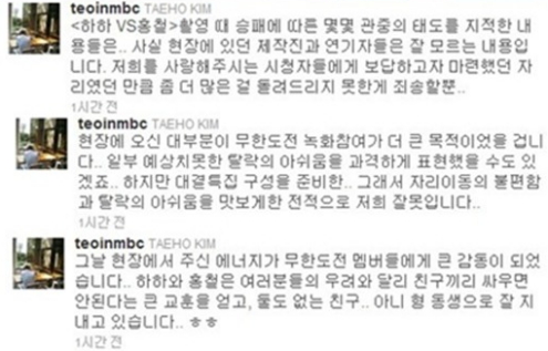 MBC '¹«ÇѵµÀü' ÇÏÇÏvsȫö ƯÁý ÃÔ¿µÇöÀåÀ» ãÀº ¹æÃ»°´µéÀÇ ¿å¼³ ³í¶õ¿¡ ´ëÇØ ±èÅÂÈ£PD°¡ ÀÚ½ÅÀÇ Æ®À§Å͸¦ ÅëÇØ »ç°ú¹®À» ÀüÇß´Ù.