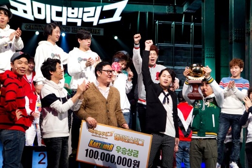 ÄÉÀ̺íä³Î tvN ¡®Äڹ̵ð ºò¸®±× ½ÃÁð2(ÀÌÇÏ ÄÚºò2)¡¯¿¡¼ ¿ì½ÂÀ» Â÷ÁöÇÑ ¶óÀÌ¶Ç ÆÀÀÌ ¿ì½Â»ó±Ý Áß ÀϺθ¦ µ¿·á °³±×¸Çµé°ú Á¦ÀÛÁø¿¡°Ô ¼±¹°Çß´Ù.