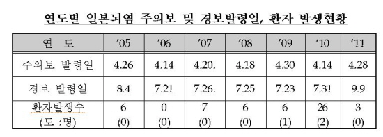 °æ³²µµ´Â Áö³ 25ÀÏ Áúº´°ü¸®º»ºÎ°¡ ºÎ»ê ¹× °æ³²Áö¿ª¿¡¼ ¿ÃÇØ ù ¹øÂ°·Î ÀϺ»³ú¿° ¸Å°³¸ð±â¸¦ È®ÀÎÇϰí ÀϺ»³ú¿° ÁÖÀǺ¸¸¦ ¹ß·ÉÇÔ¿¡ µû¶ó ¿¹¹æÁ¢Á¾ ¹ÌÁ¢Á¾ÀÚ¿¡ ´ëÇØ Á¢Á¾¿¡ ´ëÇÑ È«º¸¸¦ °ÈÇÏ°í ¾ß¿Ü È°µ¿ ½Ã ¸ð±â¿¡ ¹°¸®Áö ¾Êµµ·Ï ÁÖÀǸ¦ ´çºÎÇß´Ù.