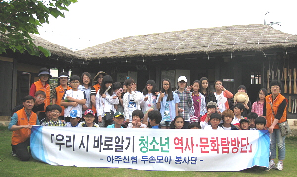 ÇÑÆí ¾ÆÁÖ½ÅÇù µÎ ¼Õ ¸ð¾Æ ºÀ»ç´ÜÀº »çÈȯ¿ø»ç¾÷ÀÇ ÀÏȯÀ¸·Î ¿ÃÇØ ¹ßÁ·ÇÑ ºÀ»ç´ÜÀ¸·Î ¶æ ±íÀº ºÀ»çȰµ¿À» À§ÇØ °í¹ÎÇϴ٠û¼Ò³âµé¿¡°Ô ¿ì¸®½ÃÀÇ ¿ª»ç¿Í ¹®È ¹Ù·Î ¾Ë±â ޹æÀ» Çϱâ·Î ¶æÀ» ¸ð¾Ò´Ù.