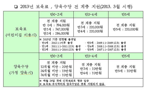 ¿À´Â 3¿ù 1ÀϺÎÅÍ ¸¸0 ~ 5¼¼ Àڳฦ µÐ ºÎ¸ðµéÀº ¾î¸°ÀÌÁýÀ̳ª À¯Ä¡¿ø¿¡ Àڳฦ º¸³»´Â °æ¿ì, ¼Òµæ°èÃþ°ú »ó°ü¾øÀÌ ´©±¸µçÁö º¸À°·á¸¦ Áö¿ø¹Þ´Â´Ù.