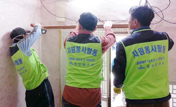 À̳¯ ºÀ»çȰµ¿¿¡ Âü¿©ÇÑ ´ë¿ìÁ¶¼±Å뿵Çâ¿ìȸ¿ø Áý¼ö¸® ºÀ»ç´ÜÀº ´ë¿ìÁ¶¼±¼Ò¿¡ ±Ù¹«ÇÏ´Â Å뿵Áö¿ª Ãâ½Åȸ¿ø 59¸íÀ¸·Î ±¸¼ºµÈ ´Üü·Î Å뿵½Ã °ü³» Àú¼ÒµæÃþ °¡Á¤À» ¼±Á¤, ¸Å³â 2ȸ ÀÌ»ó ºÀ»çȰµ¿À» ÆîÄ¡¸ç ÀÌ¿ô»ç¶û ½Çõ¿¡ ¾ÕÀå¼°í ÀÖ´Ù.