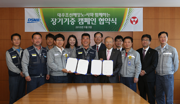 ȸ»ç¸¦ ´ëÇ¥ÇÑ Á¤¼º´ë »ó¹«(Ãѹ«ÆÀÀå)¿Í ¼º¸¸È£ ³ëÁ¶À§¿øÀå ±×¸®°í Àå±â±âÁõº»ºÎ ¹ÚÁøÅ¹ º»ºÎÀåÀÇ MOU ü°áÀ» ½ÃÀÛÀ¸·Î ´ë¿ìÁ¶¼±ÇؾçÀº ÀÓ/Á÷¿øµéÀÌ ÀÚ¹ßÀûÀ¸·Î Àå±â±âÁõ Ä·ÆäÀο¡ Âü¿©ÇÒ ¼ö ÀÖµµ·Ï »ç³»½Ä´ç TV ¹× ¼Ò½ÄÁö µî ¸ðµç »ç³»¸Åü¸¦ Ȱ¿ë, Áö¼ÓÀûÀÎ È«º¸ Ȱµ¿À» ÁøÇàÇÒ ¹æÄ§ÀÌ´Ù.