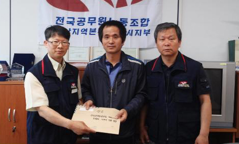 29ÀÏ ¿ÀÈÄ 2½Ã30ºÐ, Àü±¹°ø¹«¿ø³ëµ¿Á¶ÇÕ °ÅÁ¦½ÃÁöºÎ »ç¹«½Ç¿¡¼ ±³Åë»ç°í °¡Á·µ½±â ¼º±ÝÀ» Àü´ÞÇϰí ÀÖ´Ù. <¿ÞÂʺÎÅÍ ¹èº´Ã¶ ÁöºÎÀå, ÇÇÇØÇлýÀÇ ¾Æ¹öÁö, Á¤¼ºÀ± ¼ö¼®ºÎÁöºÎÀå>