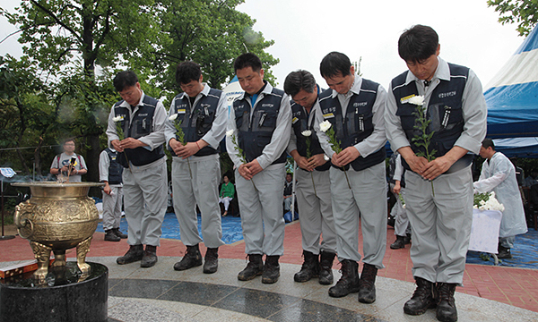 ¼º¸¸È£ À§¿øÀåÀº ±â³ä»ç¸¦ ÅëÇØ ¡°87³â ³ë¿¹ÀÇ »îÀ» »ì¾Æ¿Â 1õ¸¸ ³ëµ¿ÀÚµéÀÌ µéºÒó·³ ÀϾ ¹ÎÁÖ¿Í ÀÚÀ¯¸¦ °¥¸ÁÇϸé¼, Àΰ£´ä°Ô »ì°í ½Í´Ù´Â ¼Ò¹ÚÇÑ ²ÞÀ» ÀÌ·ç±â À§ÇØ Á¤±Ç°ú ÀÚº»¿¡ ÅõÀïÀ¸·Î ¸Â¼ ¼¼»óÀ» ¹Ù²Ù´Â ¿îµ¿À» Àü°³ Çß´Ù¡±¸ç ¡°´ë¿ìÁ¶¼±¿¡µµ ³ëµ¿ÀÚÀÇ Àΰ£´Ù¿î »îÀ» µÇã±â À§ÇØ »êÈÇØ °¡½Å ´Ù¼¸ ºÐÀÇ ¿»ç°¡ °è½Å´Ù¡±°í ¸»ÇÑ µÚ ¡°¿À´Ã ³ëµ¿¿»ç ¹× »ê¾÷ÀçÇØ ¿µ·ÉµéÀ» À§ÇÑ Ã߸ð À§·Éºñ Á¦¸·½ÄÀ» ÅëÇØ ´Ù¼¸ ºÐÀÇ ¿»ç¿Í »ê¾÷ÀçÇØ ³ëµ¿ÀÚµéÀÇ ¼þ°íÇÑ Á¤½ÅÀ» °¡½¿±íÀÌ µÇ»õ±â°í, ´õ ÀÌ»ó ³ëµ¿ÀÚµéÀÌ Ç̹ڹÞÁö ¾Ê°í, »ê¾÷ÀçÇØ ¾ø´Â ÇöÀå¿¡¼ ³ëµ¿ ÇÒ ¼ö ÀÖ´Â ±×·± ÇöÀåÀ» ¸¸µé¾î ³ª°¡´Âµ¥ È¥½ÅÀ» ´ÙÇϰڴ١± °í °ÇÑ ÀÇÁö¸¦ ¹àÇû´Ù.