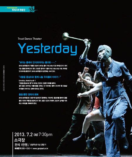 Áö³ 1995³â â´ÜµÈ ÀÌ·¡·Î Áö±Ý¿¡ À̸£±â±îÁö ±¹³»¿Ü¿¡¼ Ȱ¹ßÇÑ È°µ¿À» Àü°³ÇØ ³ª°¡°í ÀÖ´Â (»ç)Æ®·¯½ºÆ®¹«¿ë´ÜÀº ½ÅÀÛ ¡®Yesterday¡¯ ¸¦ ÅëÇØ¼ Àΰ£ÀÇ Åº»ý°ú ÇÔ²² ½ÃÀ۵Ǵ ´ÄÀ½ ¶Ç´Â ±× ÀýÁ¤ °¡±îÀÌ¿¡ µµ´ÞÇÑ ³ë³âÀÇ »î¿¡ ´ëÇÑ ÀÌÇØ¿Í ¾Æ¸§´Ù¿òÀ» Àü´ÞÇÏ°Ô µÈ´Ù.
