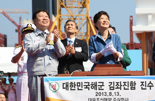 ¹Ú±ÙÇý ´ëÅë·ÉÀÌ Àá¼öÇÔ ±èÁÂÁø ÇÔ Áø¼ö½Ä¿¡ Âü¼® Áø¼ö¸¦ ÃàÇÏÇϰí ÀÖ´Ù.¹Ú ´ëÅë·ÉÀº Å뿵À» °ÅÃÄ °ÅÁ¦ ´ë¿ìÁ¶¼±ÇؾçÀ» ¹æ¹®Çß´Ù.