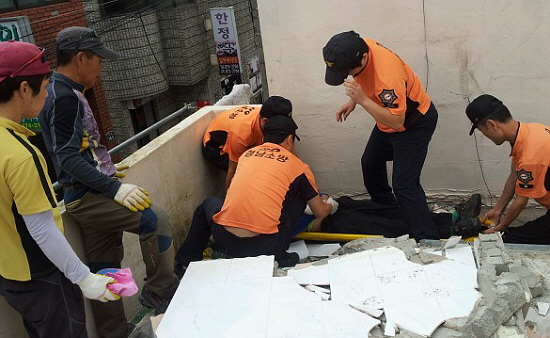 °í¼º¼Ò¹æ¼ 119±¸Á¶´ë°¡ ºÎ»ó´çÇÑ Àå¸ð¾¾¸¦ ±¸Á¶Çϰí ÀÖ´Ù.<»çÁø/°æ³² °í¼º¼Ò¹æ¼ Á¦°ø>