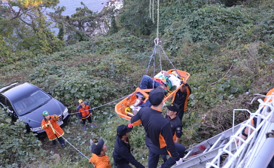 Áö³ 27ÀÏ ¿ÀÈÄ 3½Ã²² °æ³² Å뿵½Ã ¿ë³²¸é ÀåÆò¸® ½Å°ÅÁ¦´ë±³ ÈÞ°Ô¼Ò¿¡¼ ÁÖÂ÷ Â÷·®ÀÌ µÚ·Î ¹Ð·Á³ª¸é¼ Â÷ µÚ¿¡ ÀÖ´ø ¿îÀüÀÚ ±è¸ð¾¾(32)°¡ ¶°¹Ð·Á Â÷·®°ú ÇÔ²² ¿ïŸ¸®¸¦ ¶Õ°í 4~5m¿Ëº® ¾Æ·¡µµ ¶³¾îÁö´Â »ç°í°¡ ÀϾ´Ù.