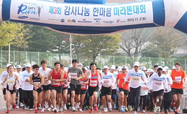 »ï¼ºÁß°ø¾÷(´ëÇ¥ÀÌ»ç »çÀå ¹Ú´ë¿µ)ÀÌ °³ÃÖÇÑ ¡®°¨»ç ³ª´® ÇѸ¶À½ ¸¶¶óÅæ´ëȸ¡¯ °¡ Áö³ 2ÀÏ °ÅÁ¦Á¶¼±¼Ò A¿îµ¿Àå¿¡¼ ¿·È´Ù.