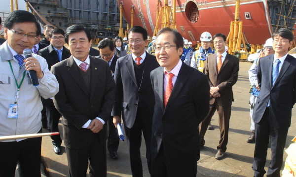 È«ÁØÇ¥ Áö»ç´Â ¡°°æ³² 50³â ¹Ì·¡Àü·«»ê¾÷ Áß ÇϳªÀÎ Á¶¼±»ê¾÷ÇØ¾çƯ±¸°¡ °æ»ó³²µµ¿Í °í¼º±ºÀÇ ¹Ì·¡ ¼ºÀå µ¿·ÂÀÌ µÉ ¼ö ÀÖµµ·Ï µµ Â÷¿ø¿¡¼ Áö¼ÓÀûÀÎ Áö¿øÀ» ¾Æ³¢Áö ¾Ê°Ú´Ù¡±°í ¹àÇû´Ù.