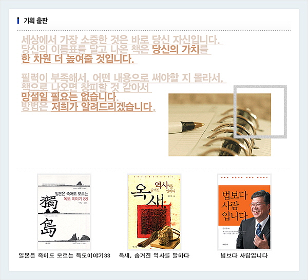 ȨÆäÀÌÁö Á¦ÀÛ°ú ±âȹ, ÇÁ·¹Á¨Å×À̼Ç, ÃâÆÇ, ÆíÁýµðÀÚÀÎ µîÀÇ ¾÷¹«¸¦ ÁøÇàÇØ¿Ô´ø¡®°ÅÁ¦À¥Áø¡¯Àº ÃÖ±Ù ¼ö¿ä Áõ°¡¿¡ µû¶ó ȨÆäÀÌÁö¸¦ °³ÆíÇϰí, »ç¾÷ºÎ¸¦ ´ë´ëÀûÀ¸·Î È®Àå, ¡®È¨ÆäÀÌÁö Á¦ÀÛ Àü¹® µðÀÚÀΠȸ»ç¡¯¿¡¼ ¡®±âȹ Àü¹® µðÀÚÀΠȸ»ç¡¯·Î ½½·Î°ÇÀ» º¯°æÇß´Ù.