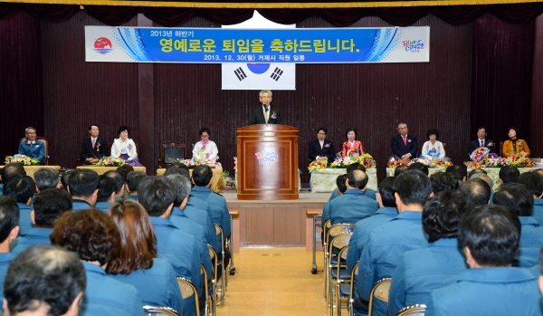 °ÅÁ¦½Ã(½ÃÀå ±Ç¹ÎÈ£)´Â 30ÀÏ ¿ÀÀü 10½Ã ½Ãû ´ëȸÀǽǿ¡¼ °¡Á·, Ä£Áö¿Í µ¿·á °ø¹«¿ø µî 300¿©¸íÀÌ Âü¼®ÇÑ °¡¿îµ¥ 2013³â ÇϹݱâ ÅðÀÓÇà»ç¸¦ ¿°í, ÈÆÀå µîÀ» Àü¼öÇÏ°í °Ý·ÁÇß´Ù.