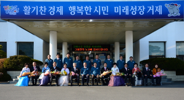 Áö¿ª¹ßÀü°ú ½Ã¹Î º¹¸®ÁõÁøÀ» À§ÇØ 30¿©³âÀ» ÀÏÇØ¿Â 6¸íÀÇ °ÅÁ¦½Ã °ø¹«¿øµéÀÌ Á¤³â°ú ¸í¿¹ÅðÁ÷À¸·Î Á¤µç °øÁ÷»ýȰÀ» ¸¶°¨Çß´Ù.