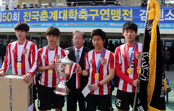 Çѱ¹´ëÇÐÃ౸¿¬¸Í(ȸÀå º¯¼®È)ÀÌ ÁÖÃÖÇϰí, °æ³² Å뿵½Ã(½ÃÀå ±èµ¿Áø)¿Í Å뿵½ÃÃ౸Çùȸ(ȸÀå ±èÈ«±Ô)°¡ ÁÖ°üÇÑ ¡®Á¦50ȸ Àü±¹Ãá°è´ëÇÐÃ౸¿¬¸ÍÀü °â µ§¼ÒÄÅ ¼±¹ßÀü¡¯¿¡¼ °í·Á´ë°¡ ¿ì½ÂÇß´Ù.